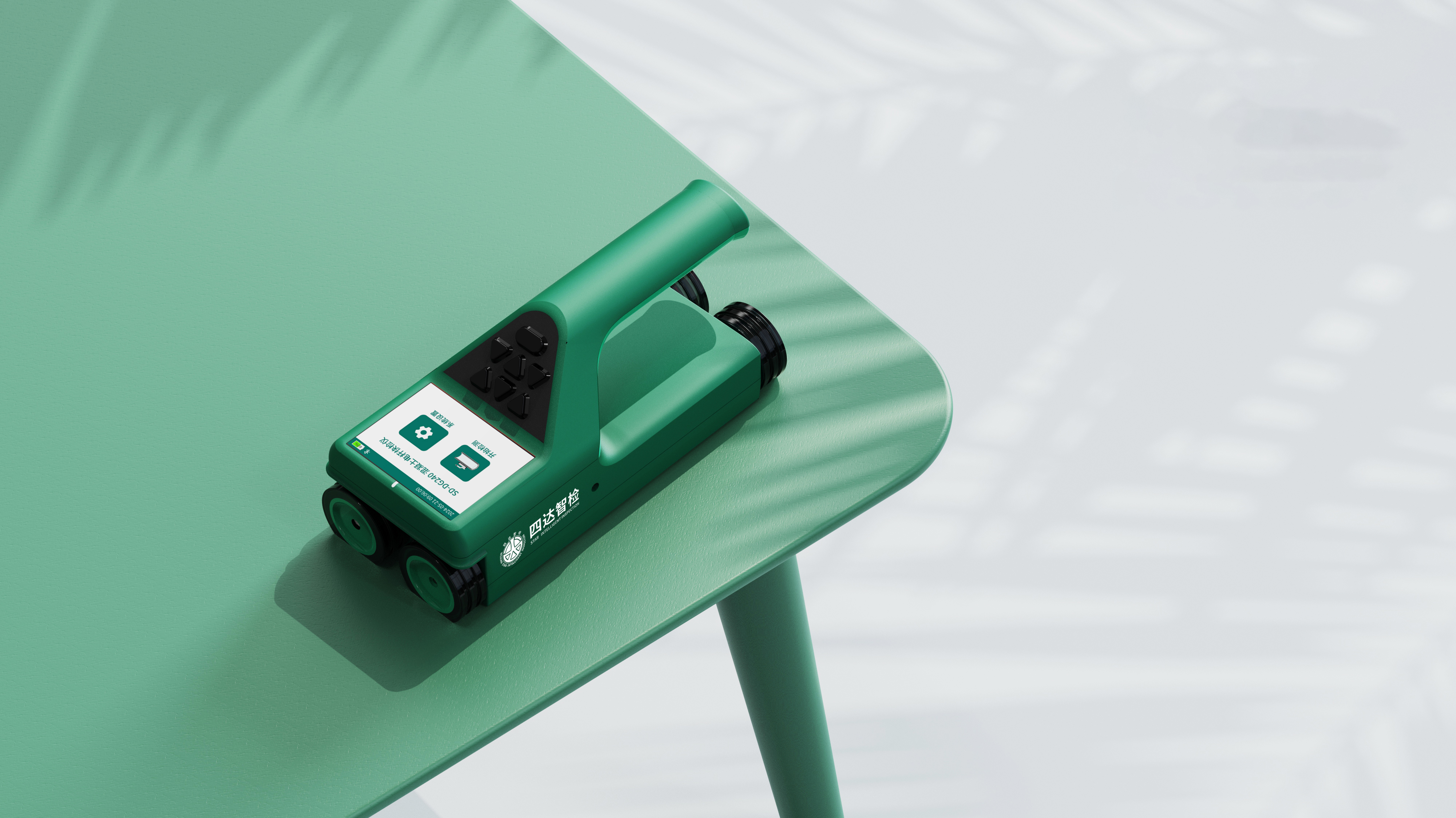 混凝土电杆钢筋快速检测仪主要是由平板电脑、钢筋保护层检测仪两部分组成,钢筋保护层检测仪通过四个导轮在混凝土电杆上移动,在检测仪内部搭载电磁传感器及角度传感器,完成对电杆纵筋数量及保护层厚度检测。通过红外线指示灯确保仪器和电杆处于平行位置进行数据采集。